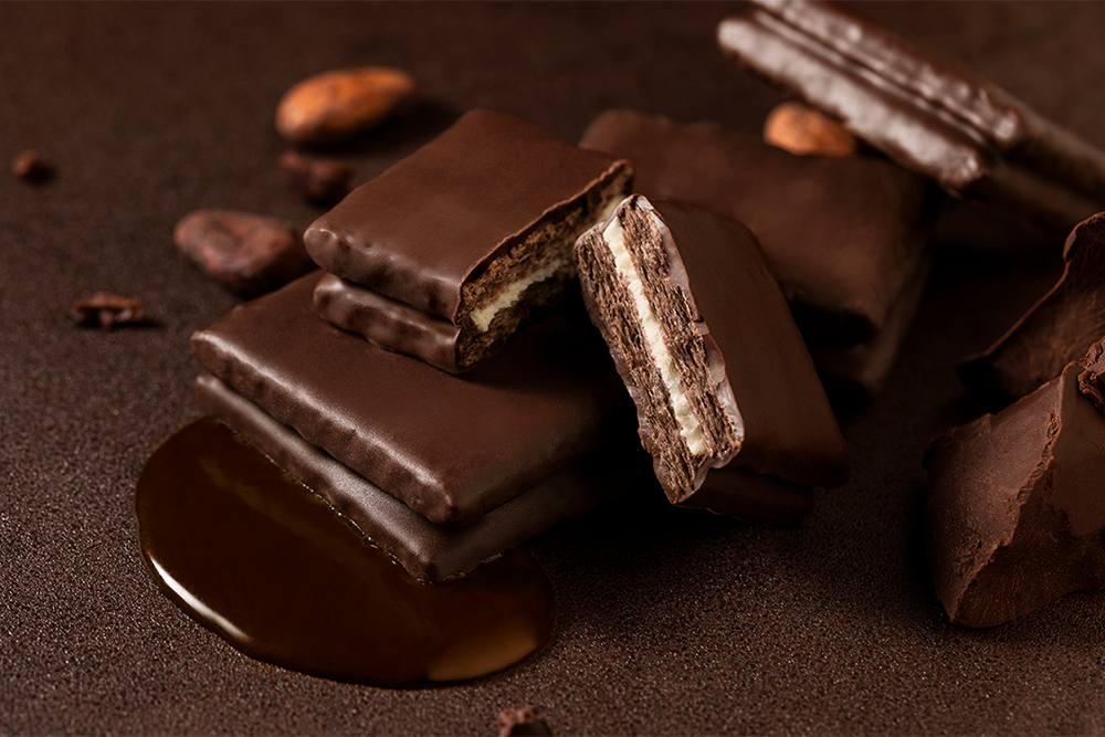 香ばしく焼いたココア生地になめらかなホワイトショコラをサンド。